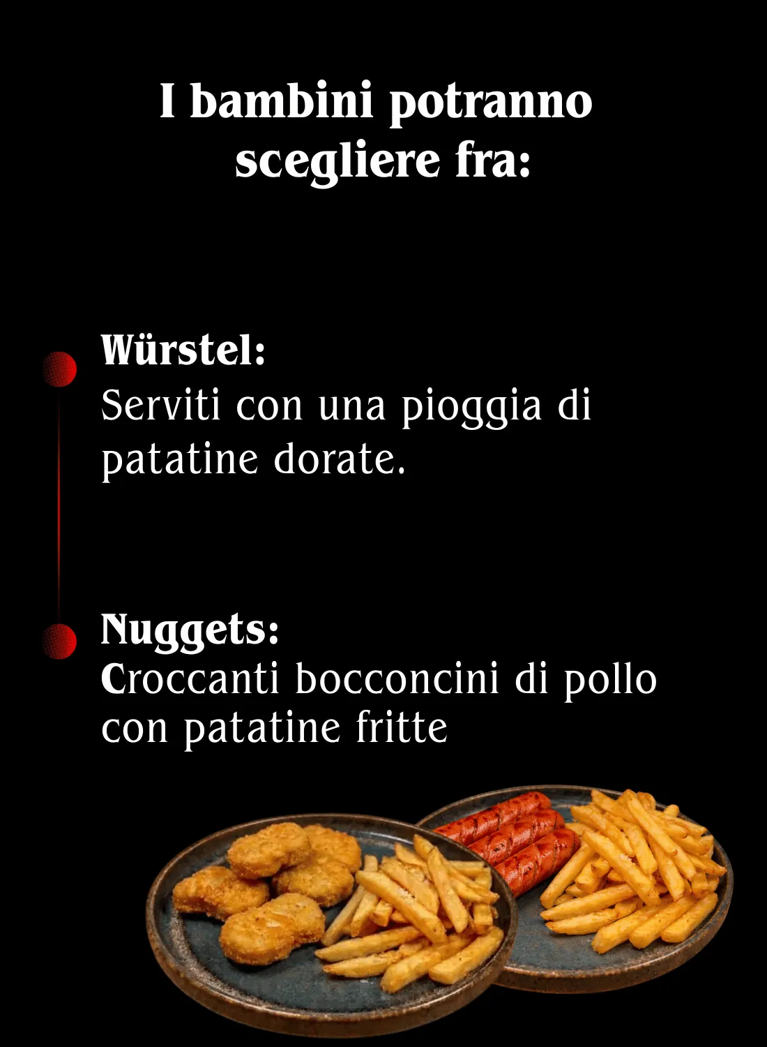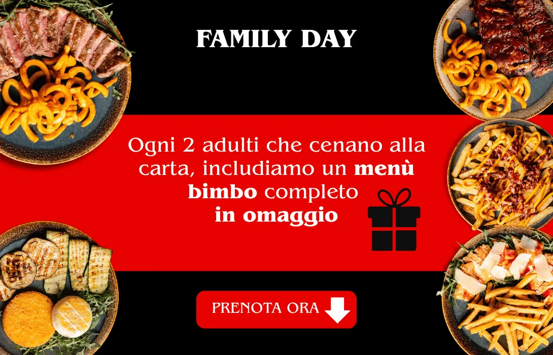1 menù bimbo omaggio ogni 2 adulti che ordinano una portata principale dal menù alla carta.